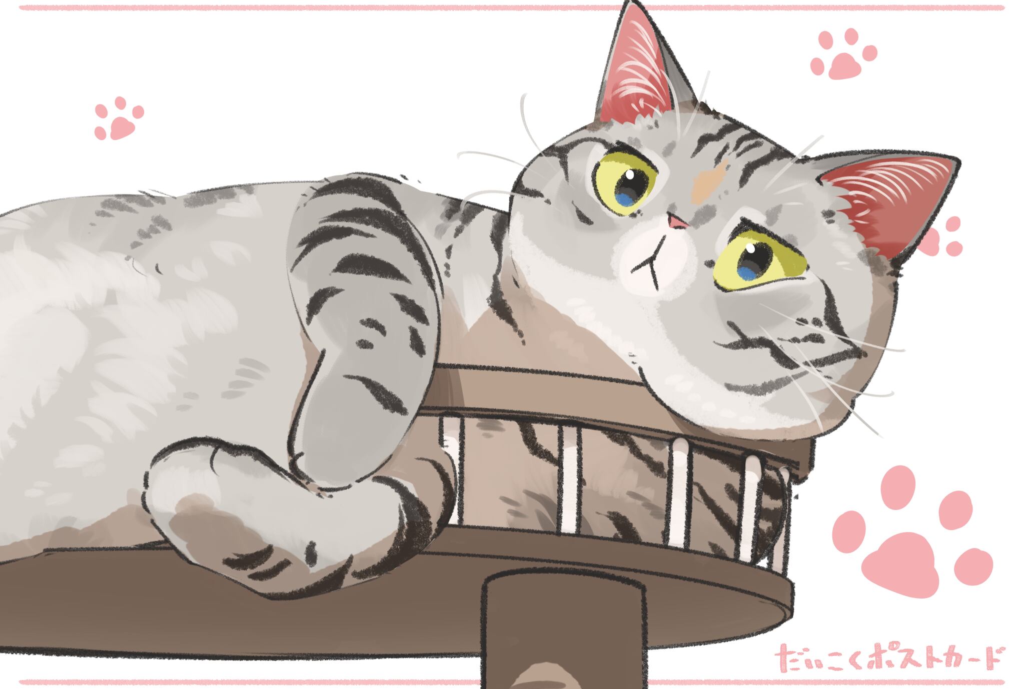 だいこくの猫絵生活シリーズの猫ちゃんのポストカードです。完全受注生産になりまして、受付期間や発送期間を限定しての販売になります。